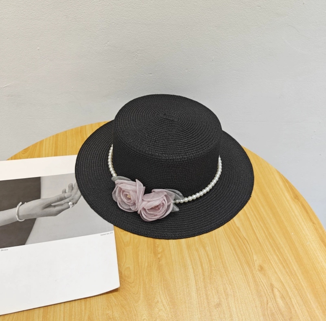 Mũ cói rơm vành phẳng nữ mùa hè phiên bản Hàn Quốc chống nắng UV cho kỳ nghỉ Nón đi biển Paris thời trang hàng đầu Pháp Chất liệu cói