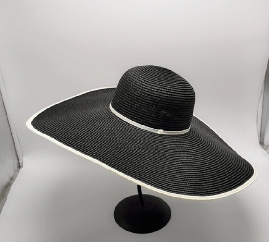 Mũ cói rơm vành phẳng nữ mùa hè phiên bản Hàn Quốc chống nắng UV cho kỳ nghỉ Nón đi biển Paris thời trang hàng đầu Pháp Chất liệu cói