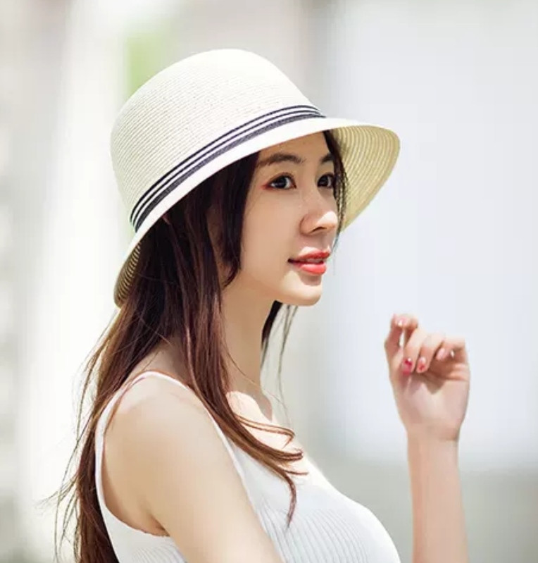 Mũ cói rơm vành phẳng nữ mùa hè phiên bản Hàn Quốc chống nắng UV cho kỳ nghỉ Nón đi biển Paris thời trang hàng đầu Pháp Chất liệu cói