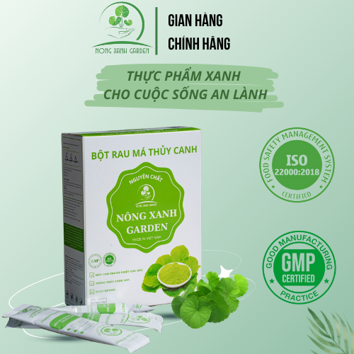 Hộp Bột Rau Má Thủy Canh Nguyên Chất Nông Xanh Garden 45GR Thực phẩm bổ sung Bột rau má với thành phần từ Rau má thủy canh tươi sau khi thu hoạch được làm sạch