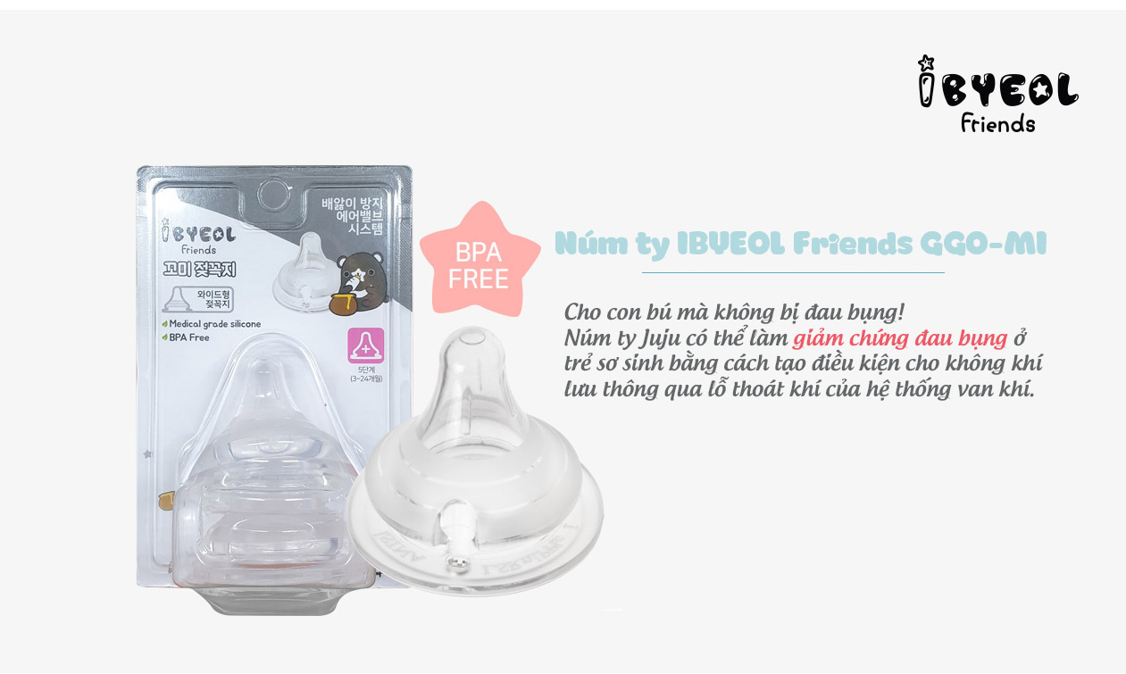 ✨Núm ti cho bé IBYEOL Friends Ggo-Mi 5 giai đoạn cho bé sơ sinh - 24 tháng (chính hãng Hàn Quốc)