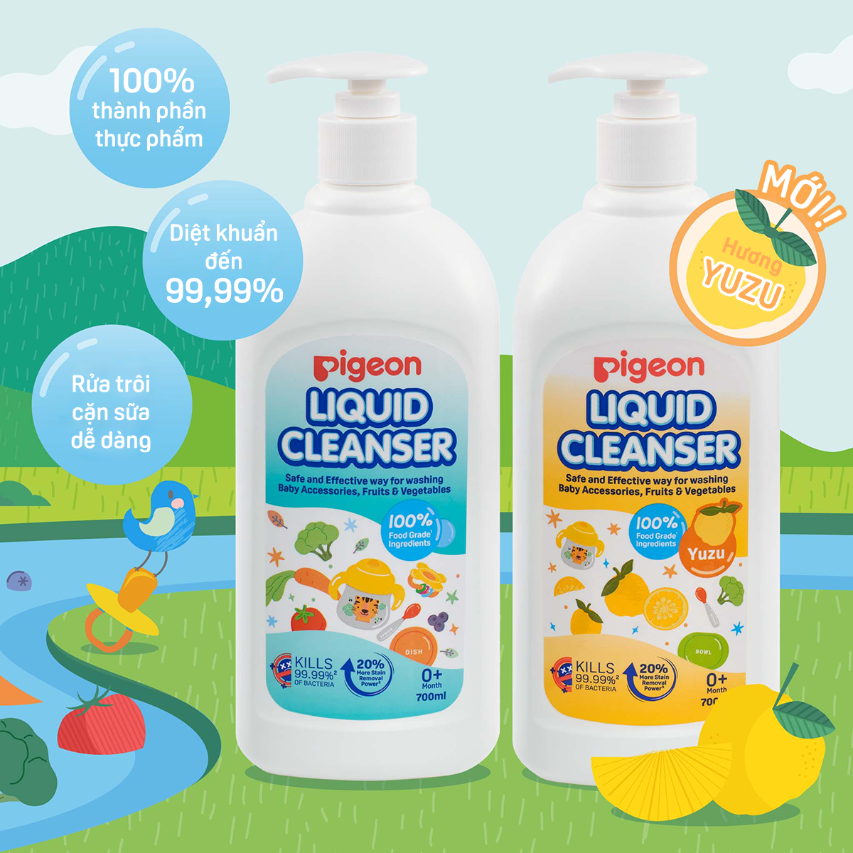 Đặc điểm nổi bật - Nước rửa bình sữa Pigeon Hương Yuzu là loại nước rửa bình có khả năng loại bỏ các chất bẩn trong bình sữa, núm ty và những đồ dùng của