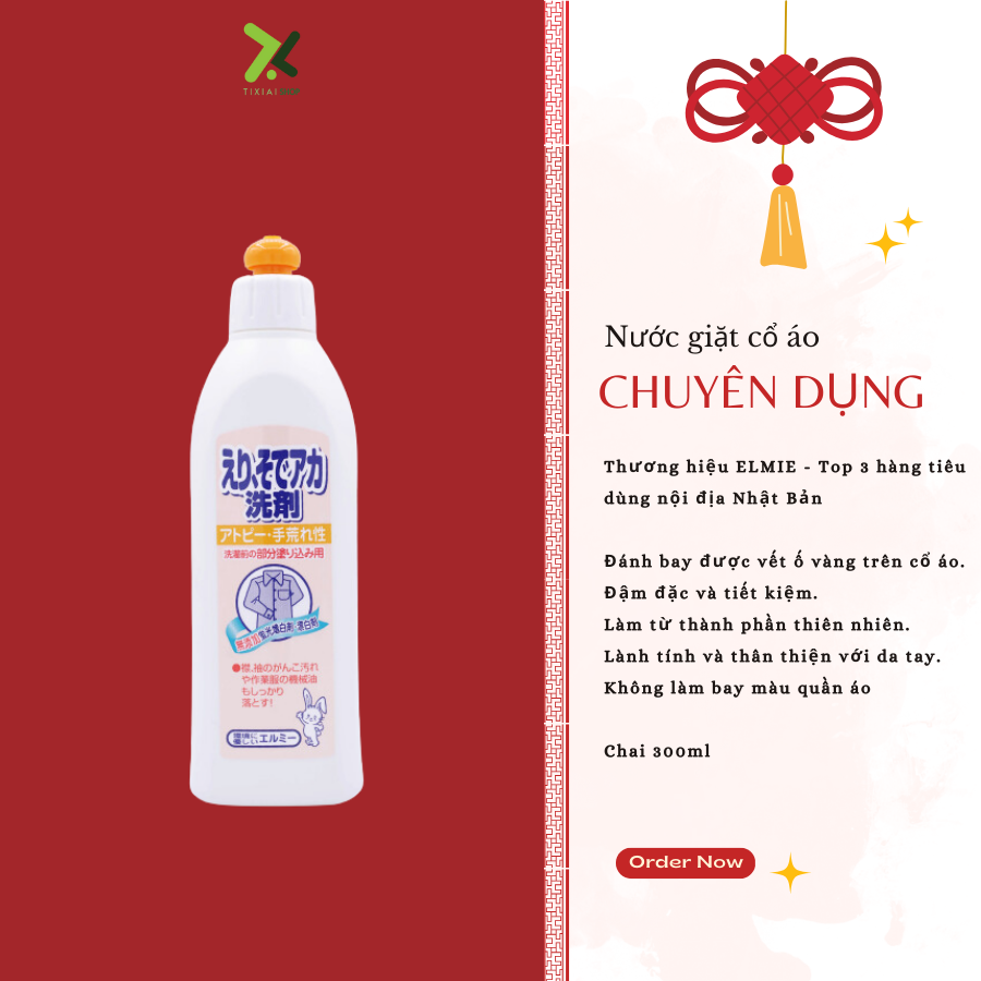 ✨Nước giặt cổ áo bẩn Elmie dành cho da dị ứng và da khô - 300ml (Hàng Nội Địa Nhật Bản)