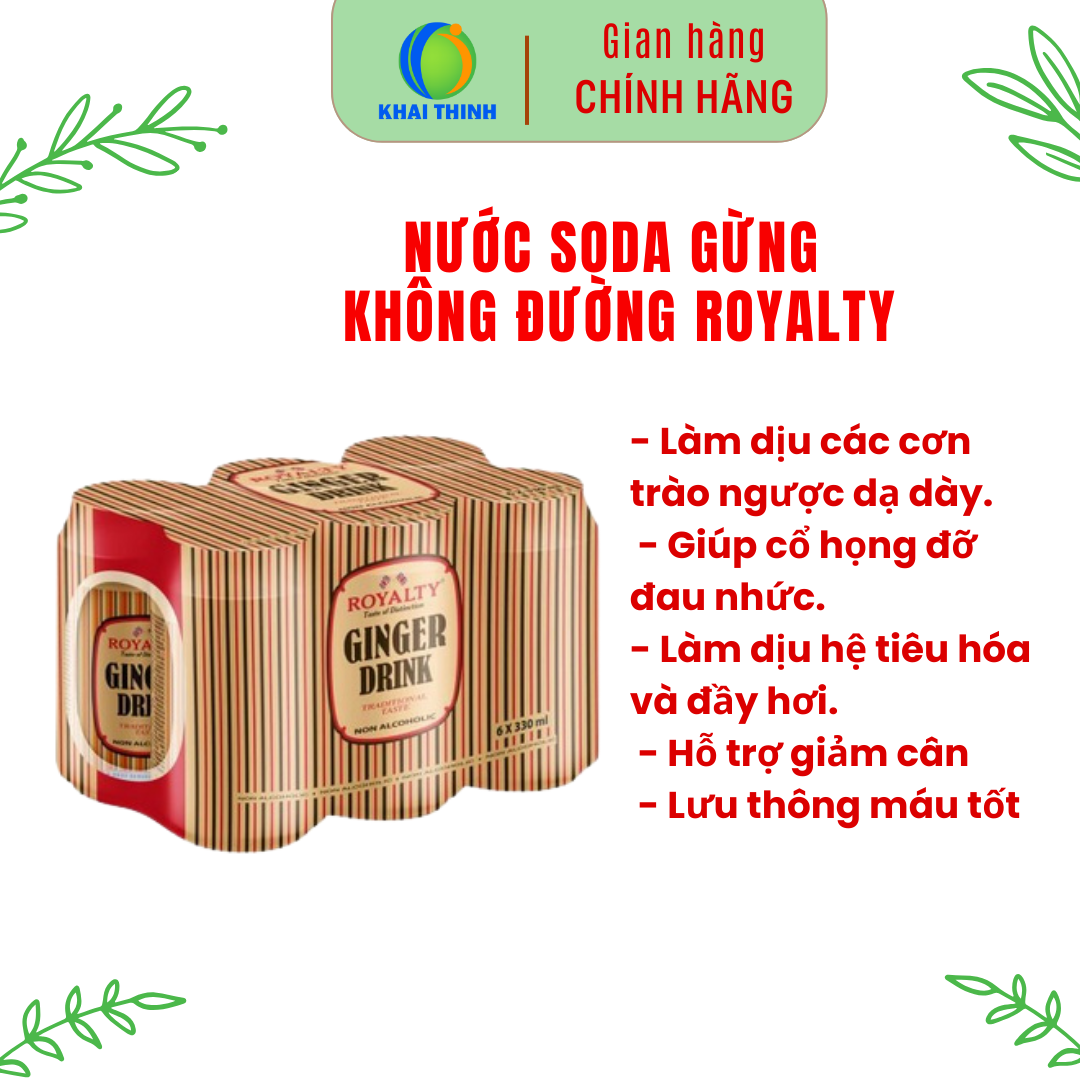 Nước Soda Gừng Phù Hợp Ăn Kiêng Giữ Ấm Cơ Thể Nhập Khẩu Anh Quốc ROYALTY GINGER 330ml * Thông tin sản phẩm: Nước soda gừng là loại thức uống rất tốt cho sức khỏe,