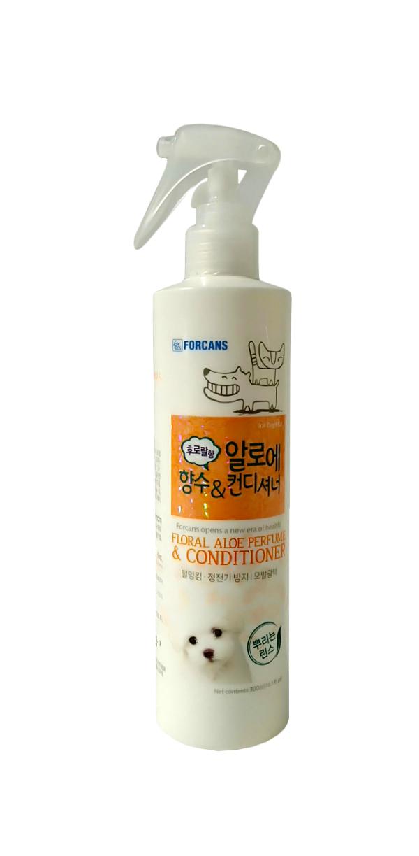 Nước Hoa Và Dầu Xả Cho Thú Cưng Chiết Xuất Nha Đam Forcans 8809058110608 (300ml) khác với các loại dầu xả khác, sau khi gội, phun sản phẩm vào lông lúc bình thường hoặc khi lông khô, em lại hiệu quả dưỡng ẩm vượt trội. chức năng tổng hợp, cung cấp dưỡng chất, ngăn ngừa tình trạng tĩnh điện, rối lông, gúp lông sáng bóng. Với hương hoa thơm mát tiện lợi sử dụng mọi lúc mọi nơi