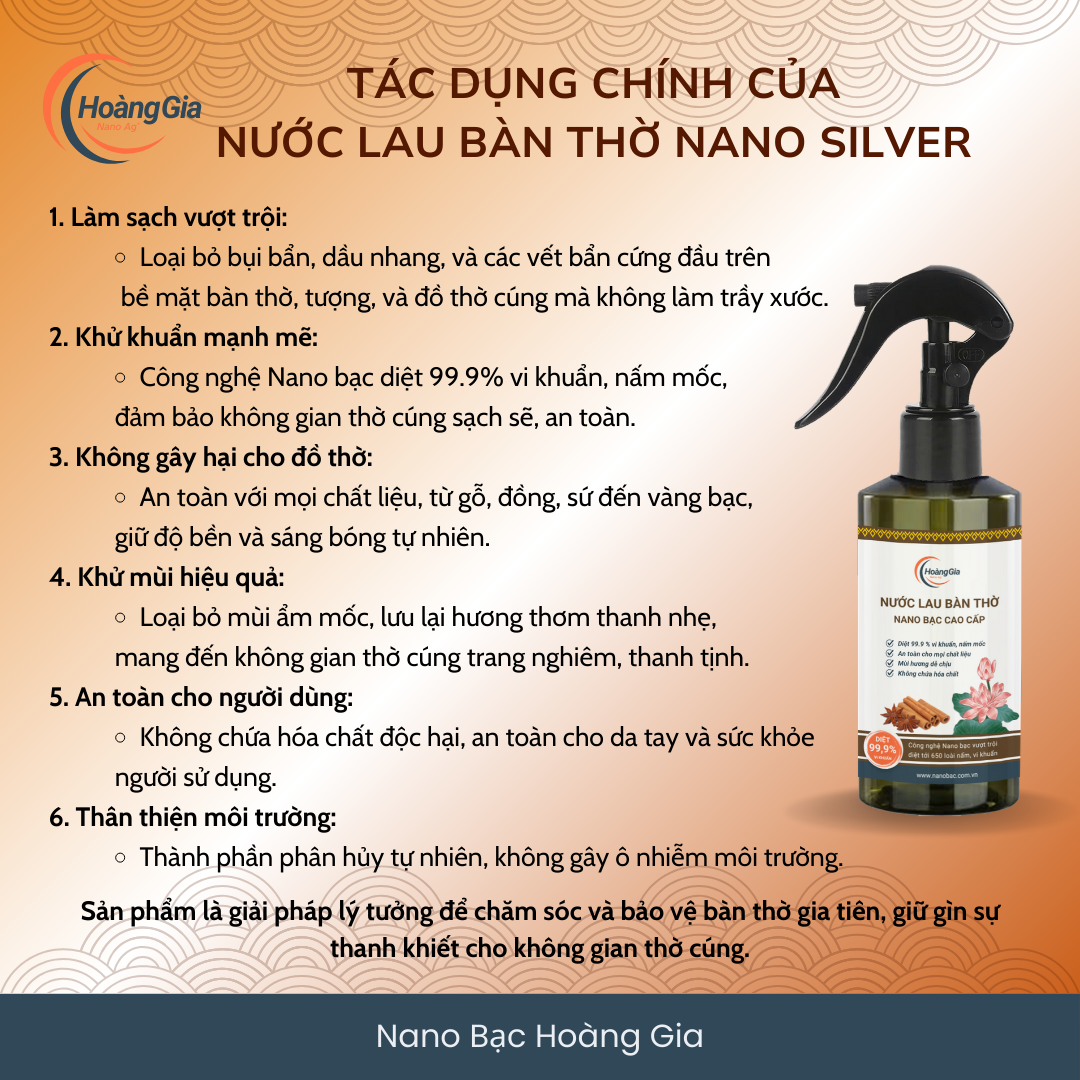 NƯỚC LAU KHỬ KHUẨN BÀN THỜ NANO BẠC Giữ bàn thờ sạch sẽ, thanh tịnh – bảo vệ sức khỏe gia đình bạn