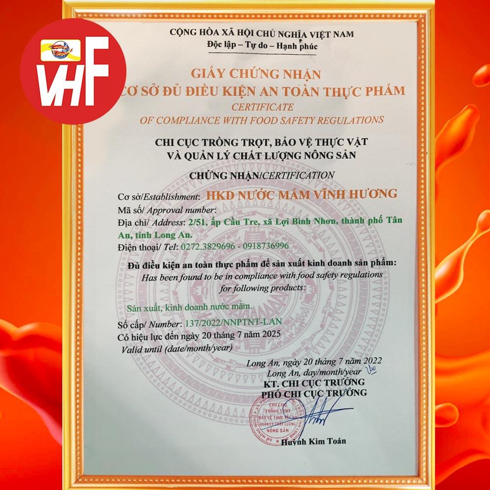 - Khuyến cáo sử dụng trong trong vòng 1 tháng kể từ ngày mở nắp. NƯỚC MẮM VĨNH HƯƠNG - 70 NĂM SẢN XUẤT NƯỚC MẮM THEO QUY TRÌNH CÔNG NGHỆ CỔ TRUYỀN Địa chỉ: 2/51 quốc lộ 62 , ấp Cầu Tre , xã Lợi Bình Nhơn , Tp Tân An , Long An
