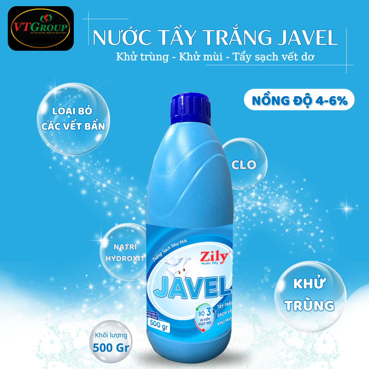 Mua tại TiktokNƯỚC TẨY TRẮNG JAVEL ZILY 500G