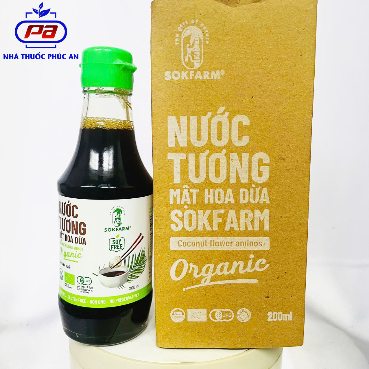 Nước tương mật hoa dừa Sokfarm 200ml - 1l nước tương ít mặn không đậu nành không chất bảo quản