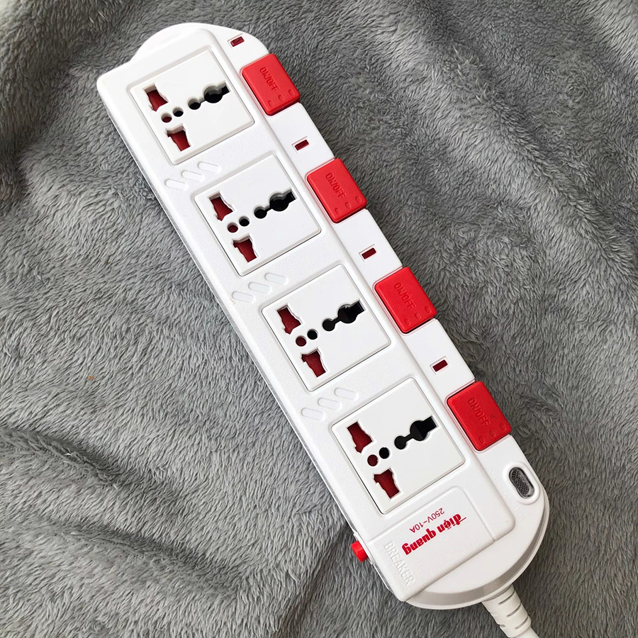 Ổ cắm đa năng cách điện bền đẹp. Chịu nhiệt, chống cháy: 750ºC Chống sét ( có dây tiếp đất) Chiều dài dây điện: 3 mét * CHI TIẾT SẢN PHẨM Chân tiếp xúc với