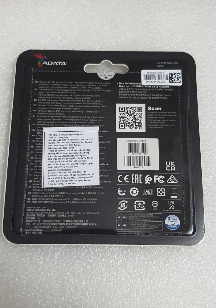 - Ổ cứng laptop dung lượng 240GB 2.5inch Adata SU650 - hàng chính hãng - - - Ổ cứng là 1 bộ phận ko thể thiếu trong laptop, là thiết bị để chứa hệ