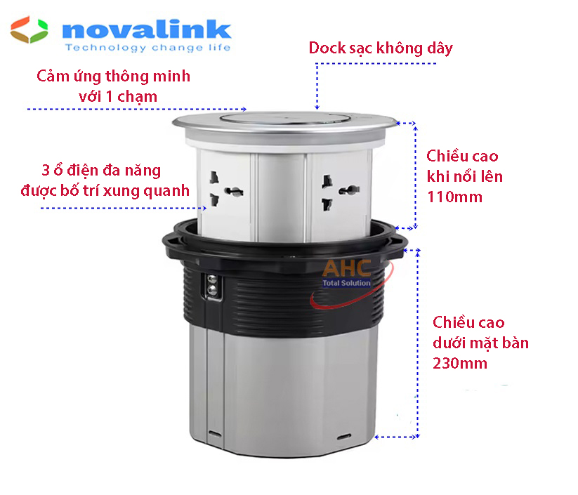 Ổ cắm điện âm bàn đảo nâng hạ cảm ứng Novalink WTWF-W - Giải pháp hiện đại cho không gian sống và làm việc