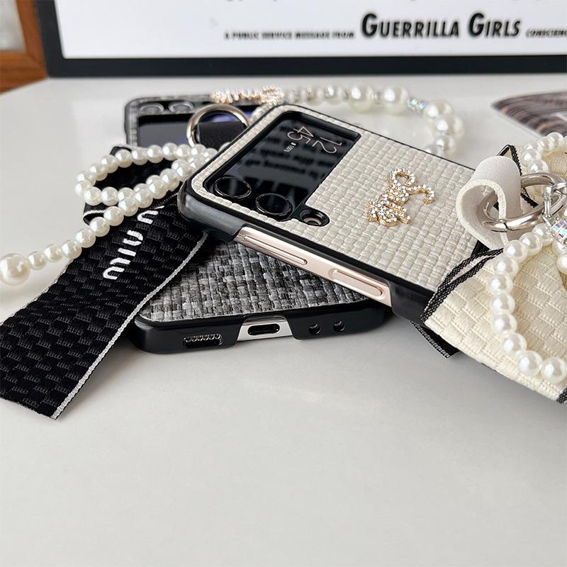 Ốp Lưng Phong Cách Nhẹ Nhàng Kèm Phụ Kiện Xinh Xắn cho Samsung Z FLIP 6 / Z FLIP 5 - Chất liệu : viền nhựa cứng , mặt lưng bọc simili ánh nhũ nhẹ