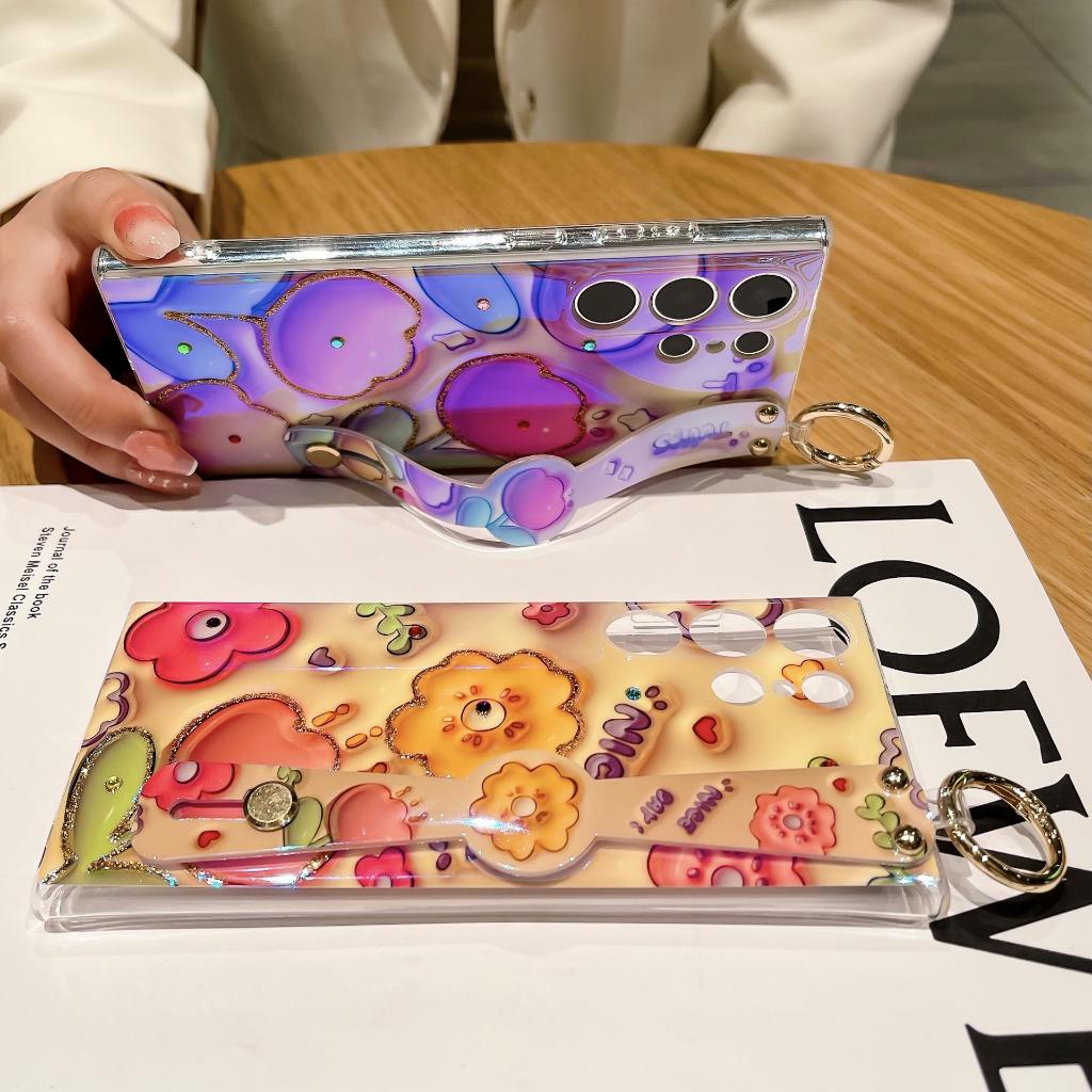 ✨Ốp Lưng Cho Samsung S25 ULTRA / S24 Ultra / S24 PLus / S23 Ultra / S23 PLus Hoa 3D Kim Tuyến Đính Đá Có Dây Xỏ Tay Và Làm Gía Đỡ - Bum Store Galaxy Case