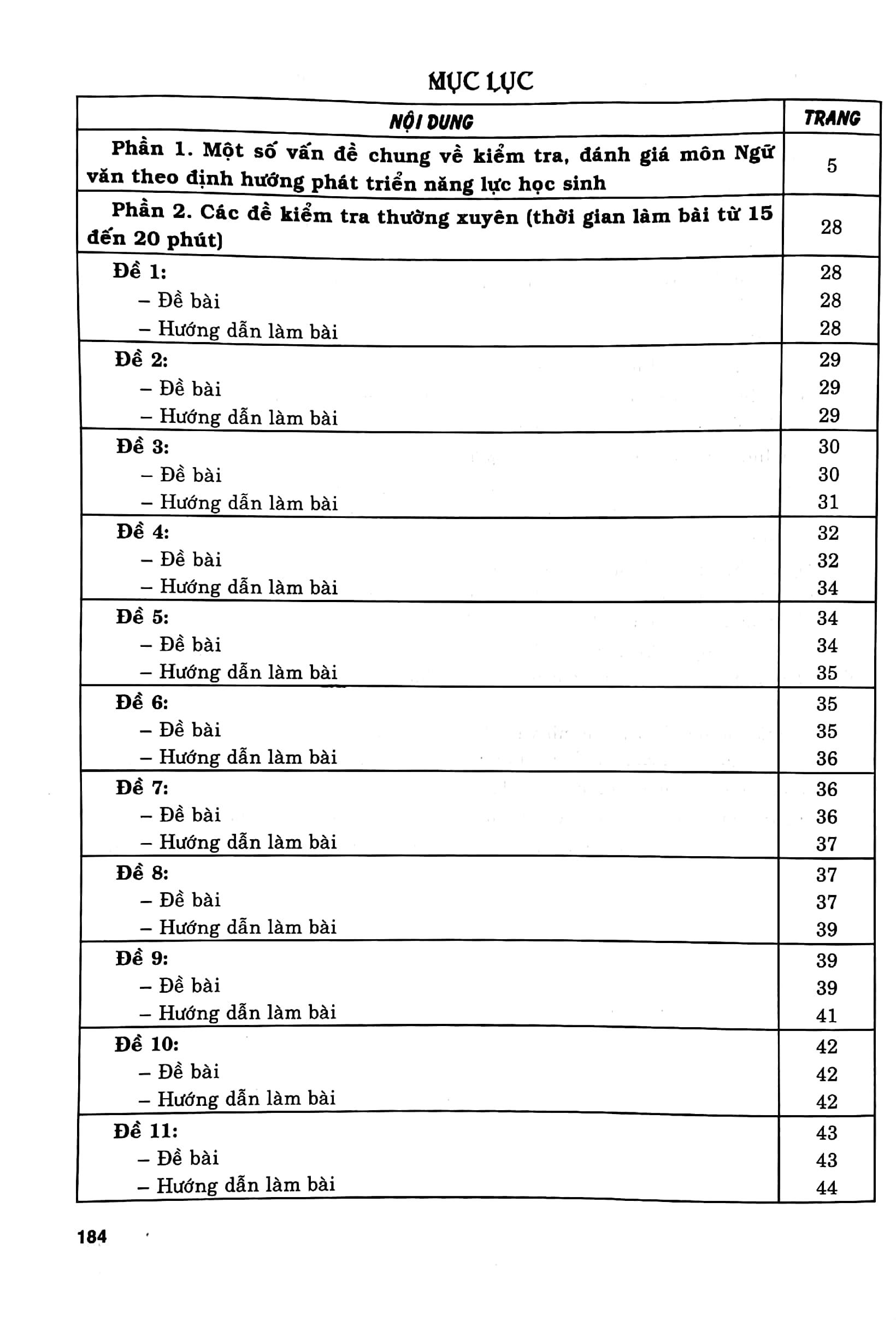 Phần này có 20 đề, tùy vào từng dạng đề và các đối tượng học sinh khác nhau, các em có thể làm bài từ 15 phút đến 20 phút. Các đề ở phần này là các dạng câu hỏi trắc nghiệm khách quan và câu hỏi tự luận, sẽ giúp các em ôn tập các kiến thức cơ bản đã học có mở rộng và nâng cao qua các ngữ liệu ngoài chương trình.