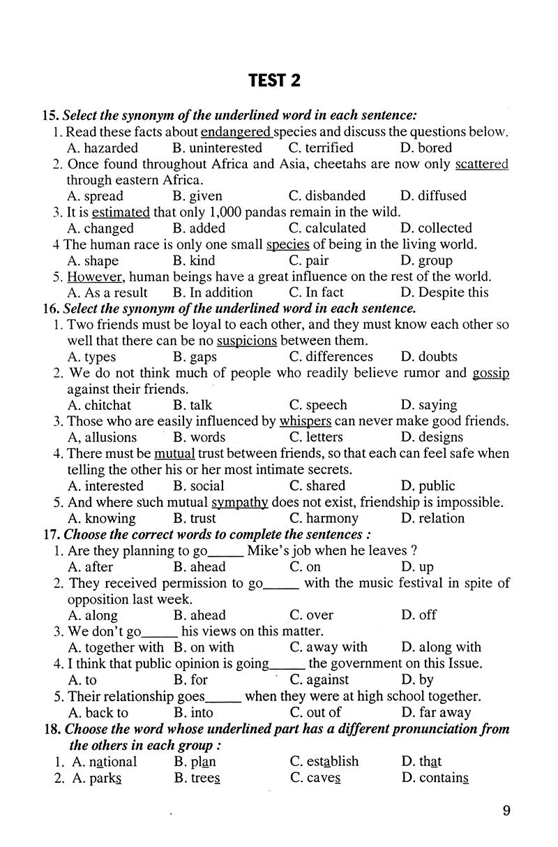 Cấu trúc đề thi và bài tập đều được chọn lọc theo tiêu chí: sát với đề thi nhất có thể. Lời giải chi tiết cũng được cải tiến, giúp các em hiểu sâu vấn đề, các từ vựng trong bài đều được giải nghĩa và cung cấp ví dụ cùng lời dịch. Như vậy, ngoài việc hiểu từ ra, các em còn biết được cách dùng từ - một yếu tố vô cùng hữu ích để làm tốt phần tự luận hoàn thiện câu và viết câu.