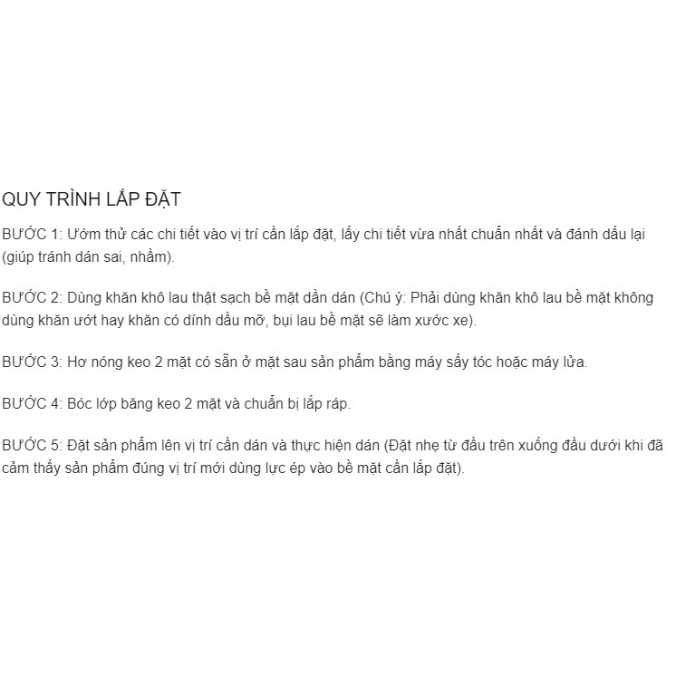 - Bước 5: Đặt sản phẩm lên vị trí cần dán và thực hiện dán ( Đặt nhẹ từ đầu trên xuống đầu dưới khi đã cảm thấy sản phẩm đúng vị trí mới dùng lực ép vào bề mặt cần lắp đặt ) THÔNG TIN HÀNG HÓA: