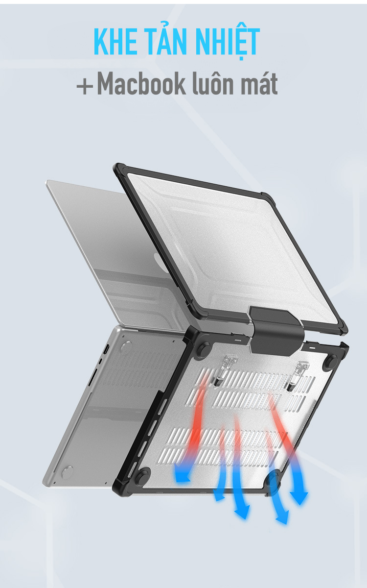Tản nhiệt hiệu quả với chân đế và lỗ thoát khí giúp Mac không bị quá nhiệt khi sử dụng trong thời gian dài, bảo vệ hiệu suất và tuổi thọ linh kiện bên trong