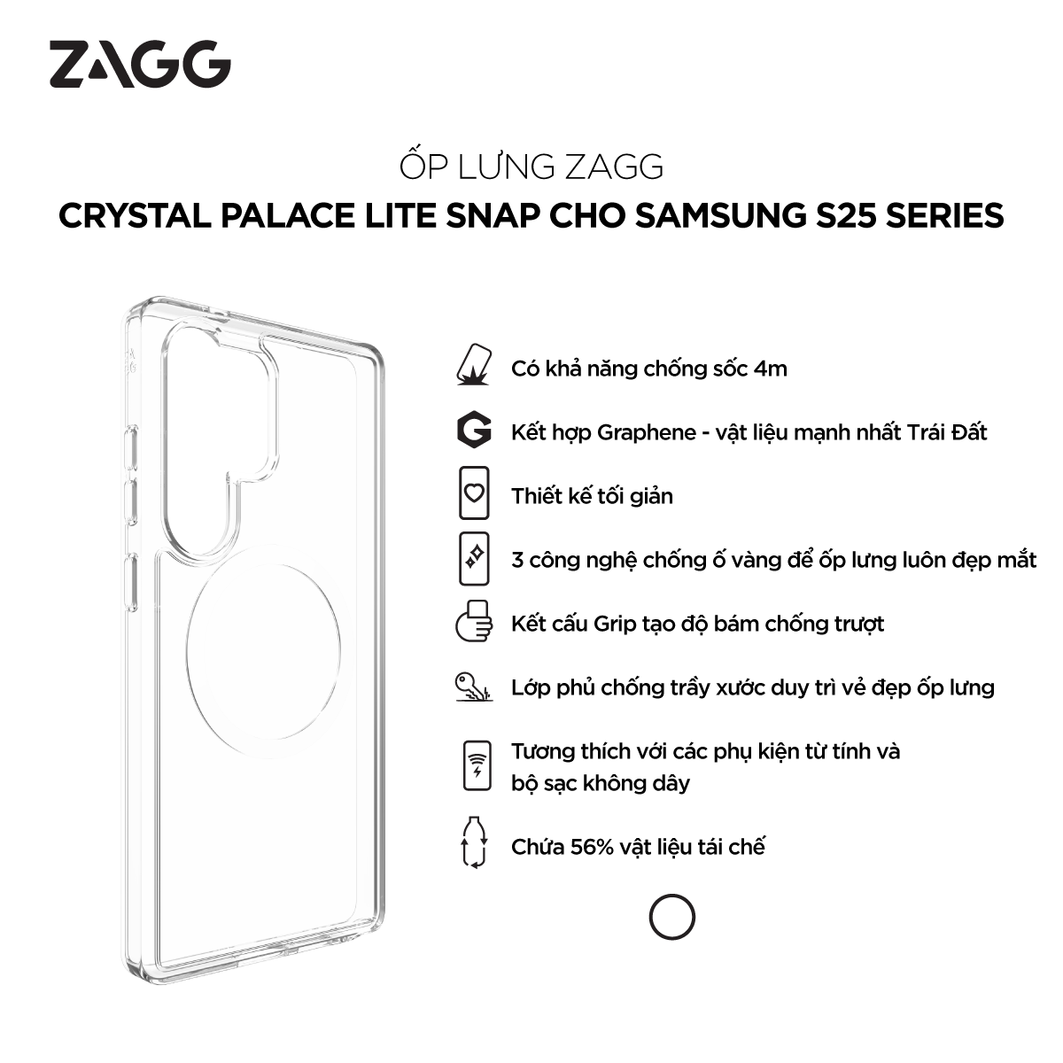 Khả năng chống sốc đến 3m Thiết kế trong suốt, mỏng nhẹ, vừa vặn dễ dàng bỏ vào túi Tương thích với hầu hết các bộ sạc không dây Sử dụng vật liệu cao cấp,