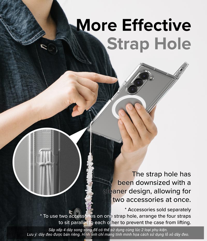 • Kích thước lỗ xỏ dây đeo cải tiến cho phép treo (móc) được 2 phụ kiện cùng lúc. Lưu ý: dây đeo được bán riêng. Hình ảnh chỉ minh họa cách sử dụng sản phẩm.