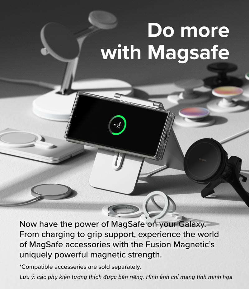 • Tuỳ thuộc khả năng tương thích mà sạc Magnetic hoặc các loại sạc có chứng nhận MFM-certified có thể hoạt động chậm hơn hoặc không hoạt động trên các thiết bị Samsung. Xin lưu ý rằng đây KHÔNG PHẢI LỖI do ốp lưng.