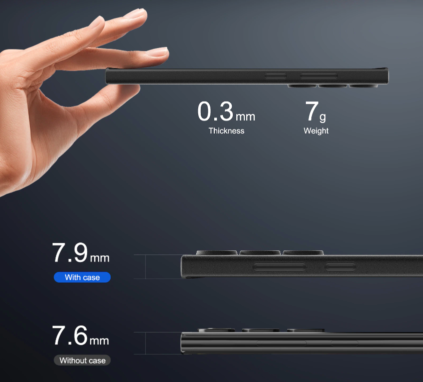 - Ốp lưng nhám siêu mỏng Samsung Galaxy S25 Ultra độ mỏng tuyệt đối chỉ 0.3mm.