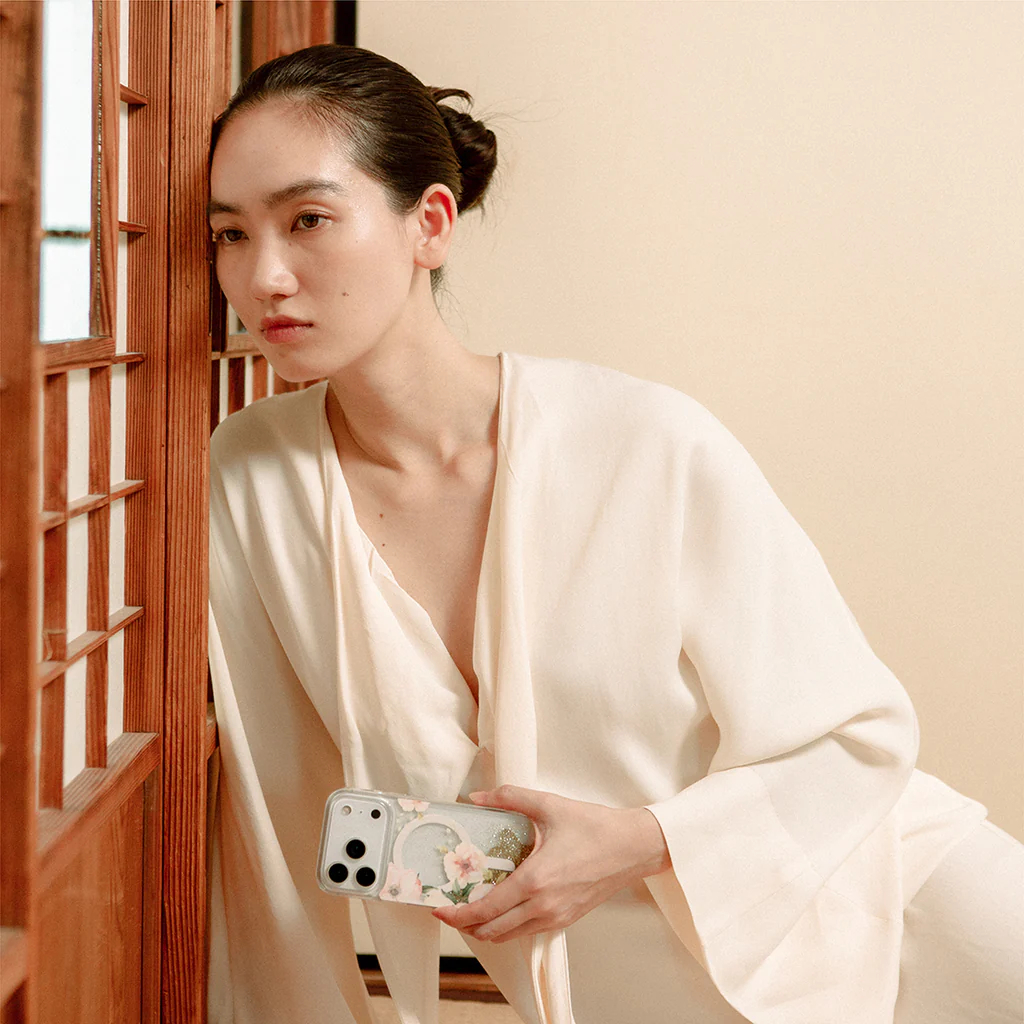 Ốp Lưng UNIQ COEHL FLEURETTE Cho iPhone 17 Pro Max Hiệu Ứng Cát Chảy Tuyệt Đẹp Khi Xoay Điện Thoại Fleurette ghi lại hình ảnh thác nước nhẹ nhàng trong vườn, nơi những bông hoa