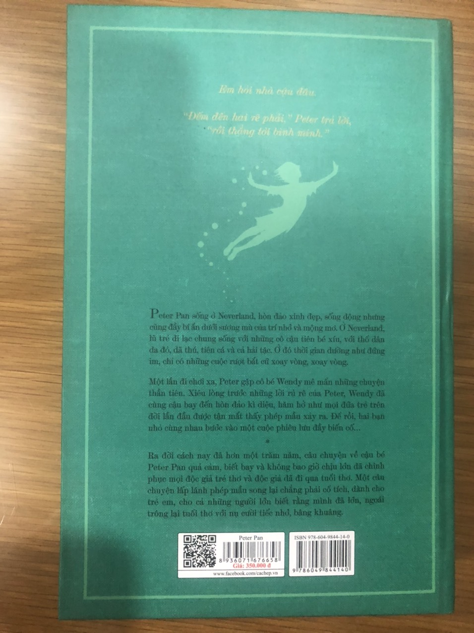 Ra đời cách nay đã hơn một trăm năm, câu chuyện về cậu bé Peter Pan quả cảm, biết bay và không bao giờ chịu lớn đã chinh phục mọi độc giả trẻ thơ và độc giả đã đi qua tuổi thơ. Một câu chuyện lấp lánh phép mầu song lại chẳng phải cổ tích, dành cho trẻ em, cho cả những người lớn biết rằng mình đã lớn, ngoái trông lại tuổi thơ với nụ cười tiếc nhớ, bâng khuâng.