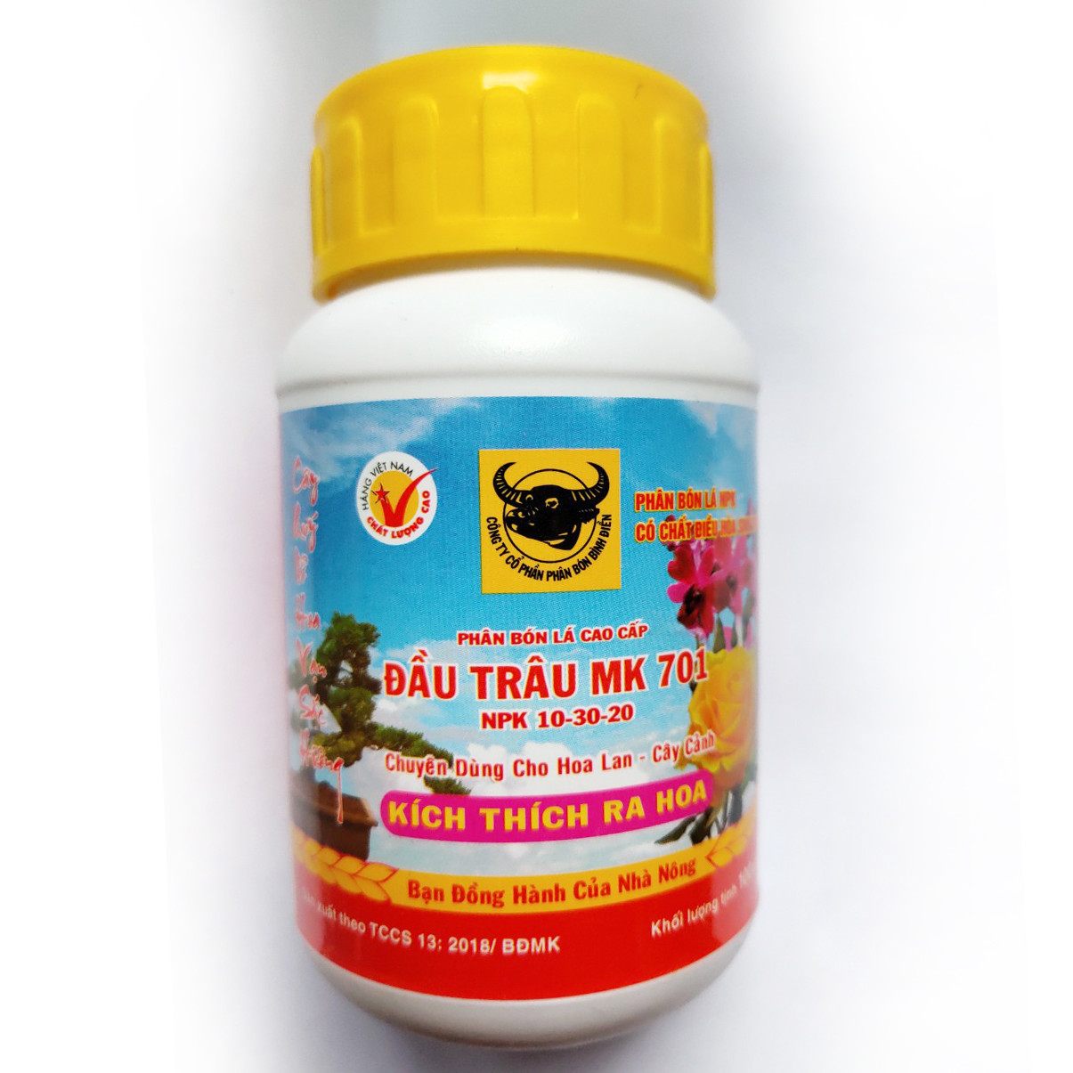 PHÂN BÓN LÁ ĐẦU TRÂU MK 701 Phun khi Lan đã thành thục đến khi ra nụKÍCH THÍCH RA HOA * Thành phần: N: 10 %, P2O5: 30 %, K2O: 20 %, CaO: 0.05 %,