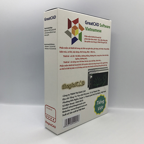 Phần mềm thiết kế GreatCAD phiên bản tiêu chuẩn – giao diện tiếng Việt được xây dựng và phát triển bởi công ty TNHH Thế giới CAD là phần mềm vẽ 2D. Phần