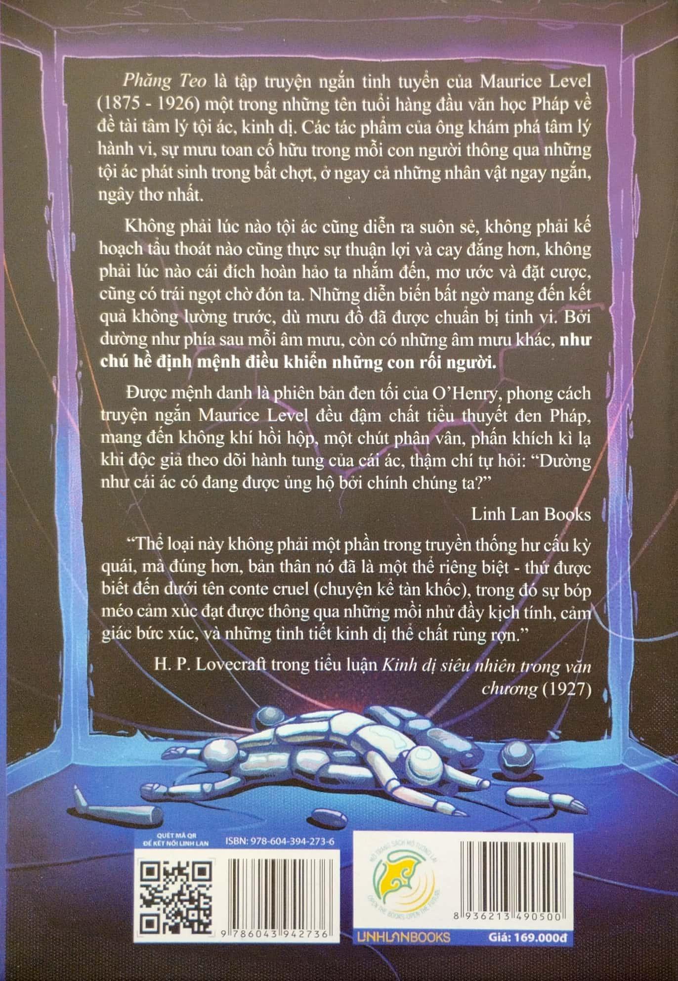 Phăng Teo là tập truyện ngắn tinh tuyển của Maurice Level (1875 - 1926) một trong những tên tuổi hàng đầu văn học Pháp về đề tài tâm lý tội ác, kinh dị. Các tác phẩm của ông khám phá tâm lý hành vi, sự mưu toan cố hữu trong mỗi con người thông qua những tội ác phát sinh trong bất chợt, ở ngay cả những nhân vật ngay ngắn, ngây thơ nhất.
