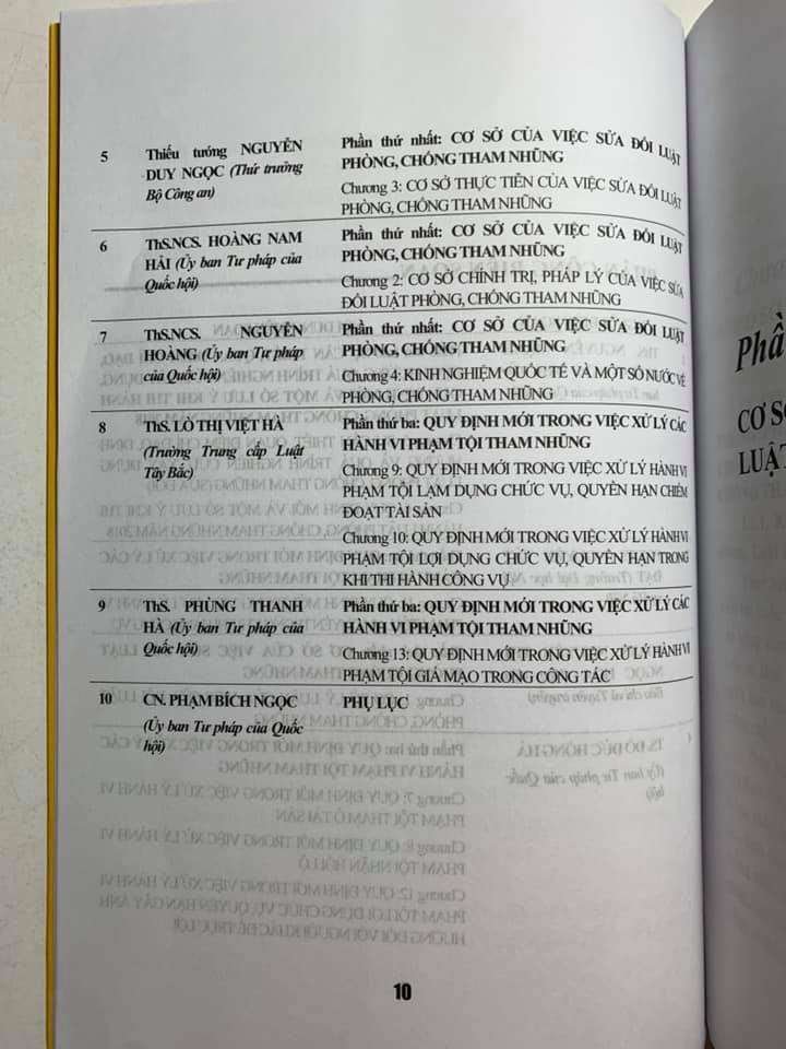 Để hiểu thêm về đạo luật Phòng, chống tham nhũng có hiệu lực từ ngày 1/7/2019 và để góp phần đưa bộ luật này sớm đi vào cuộc sống, Nhóm tác giả đã biên soạn cuốn: Pháp luật về phòng, chống tham nhũng và xử lý các hành vi phạm tội. Ngoài lời giới thiệu, danh mục tài liệu tham khảo, cuốn sách gồm 3 phần, 13 chương và 4 phụ lục: