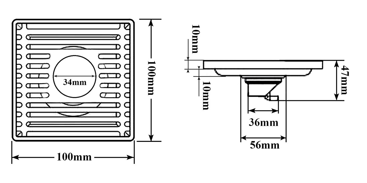 ️ Đế của phễu thu sàn được đúc nguyên khối, chắc chắn và bền bỉ, không han rỉ khi sử dụng. ️ Mặt thoát sàn được thiết kế cùng các thanh song song với khoảng cách rộng, giúp thoát nước nhanh chóng hơn. ️Mặt thoát được thiết kế nằm gọn trong đế phễu thu sàn, dễ dàng lấy ra và vệ sinh khi cần thiết. ️ Trên mặt thoát của phễu thu được thiết kế thêm 1 đường thoát với đường kính 34mm có thể kế nối với ống nước thải của máy giặt, tránh nước tràn trên sàn nhà. CHỐNG HÔI TỐI ƯU ️ Sản phẩm được thiết kế với 1 đế thoát và ngăn mùi hiệu quả. Đế thoát được thiết kế dạng trong lực, tự động mở khi có nước chảy xuống và tự đóng khi hết nước. Ngăn mùi tối ưu, tránh côn trùng đi lên từ đường ống. Đi lèm là một nắp lọc rác, dễ dàng vệ sinh sản phẩm khi cần. ️ Các bộ phận có thể tháo rời, đơn giản, thuận tiện hơn cho việc vệ sinh và lắp đặt. ️ Thoát nước nhanh chóng và hiệu quả. BẢN VẼ KỸ THUẬT
