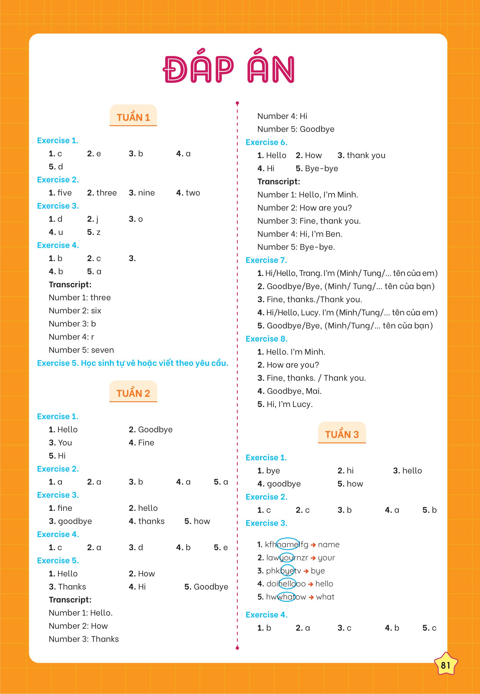 Đặc biệt, sau mỗi kì sẽ có bài ôn tập giữa kì và cuối kì giúp con có tài liệu ôn tập cho các kì kiểm tra. Ngoài ra, phần đáp án phía sau giúp bố mẹ đánh giá năng lực, từ đó có phương pháp ôn luyện phù hợp cho con.