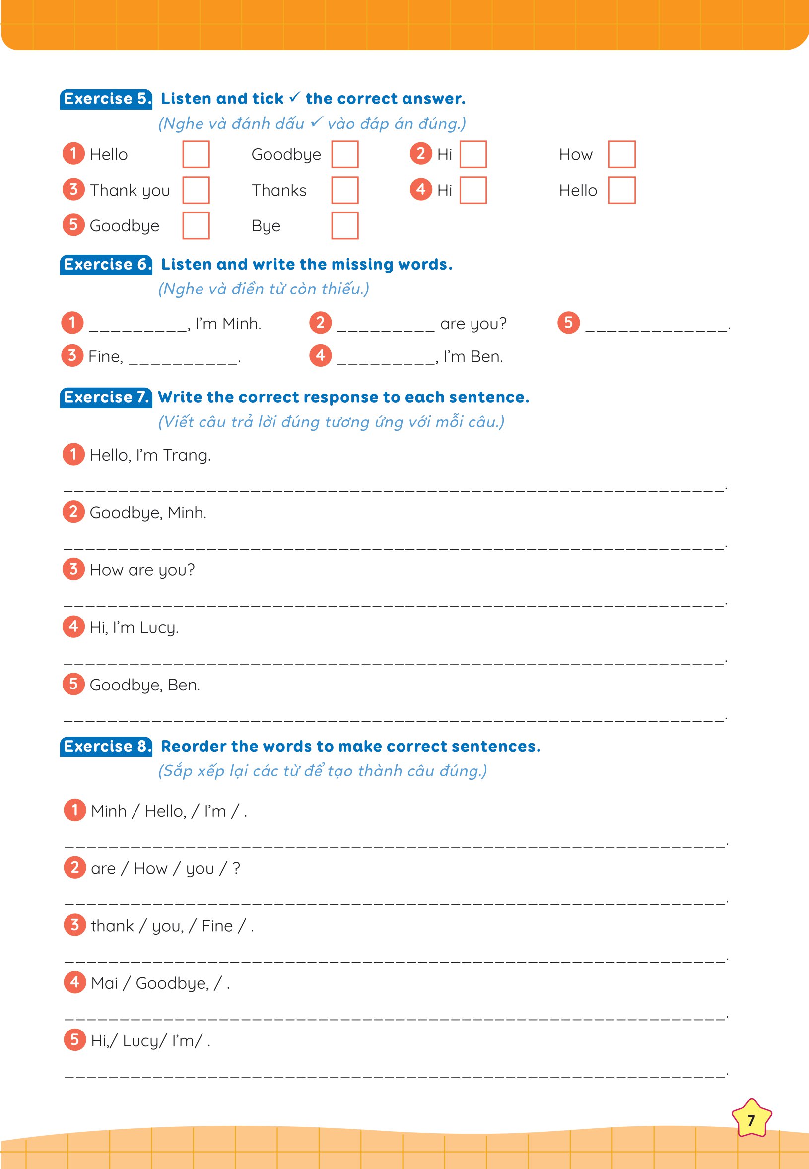 Giải bài tập Tiếng anh lớp 3 Unit 1 Hello