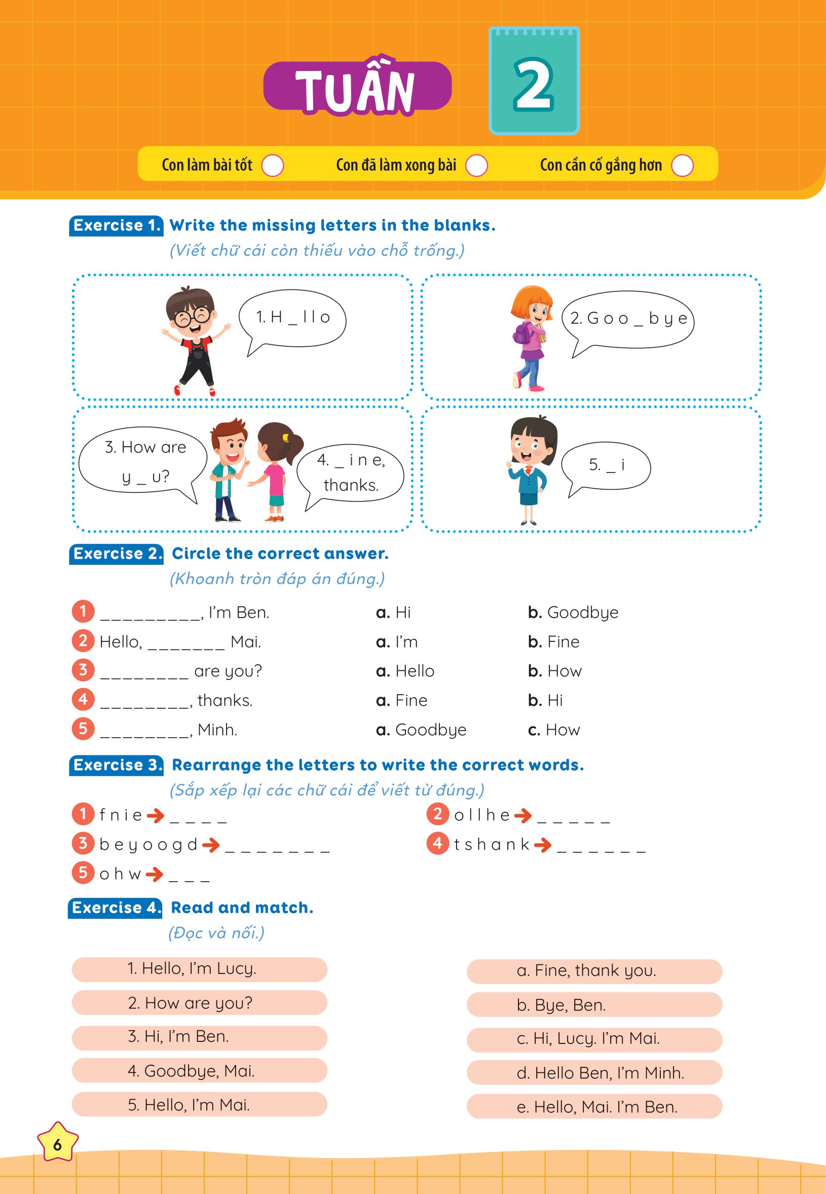 Bộ sách Phiếu bài tập cuối tuần Tiếng Anh 3 chính là tâm huyết của các thầy cô với nhiều năm kinh nghiệm giảng dạy, mong muốn các con rèn luyện và nắm vững kiến thức, tự tin bước tiếp trên con đường học tập.