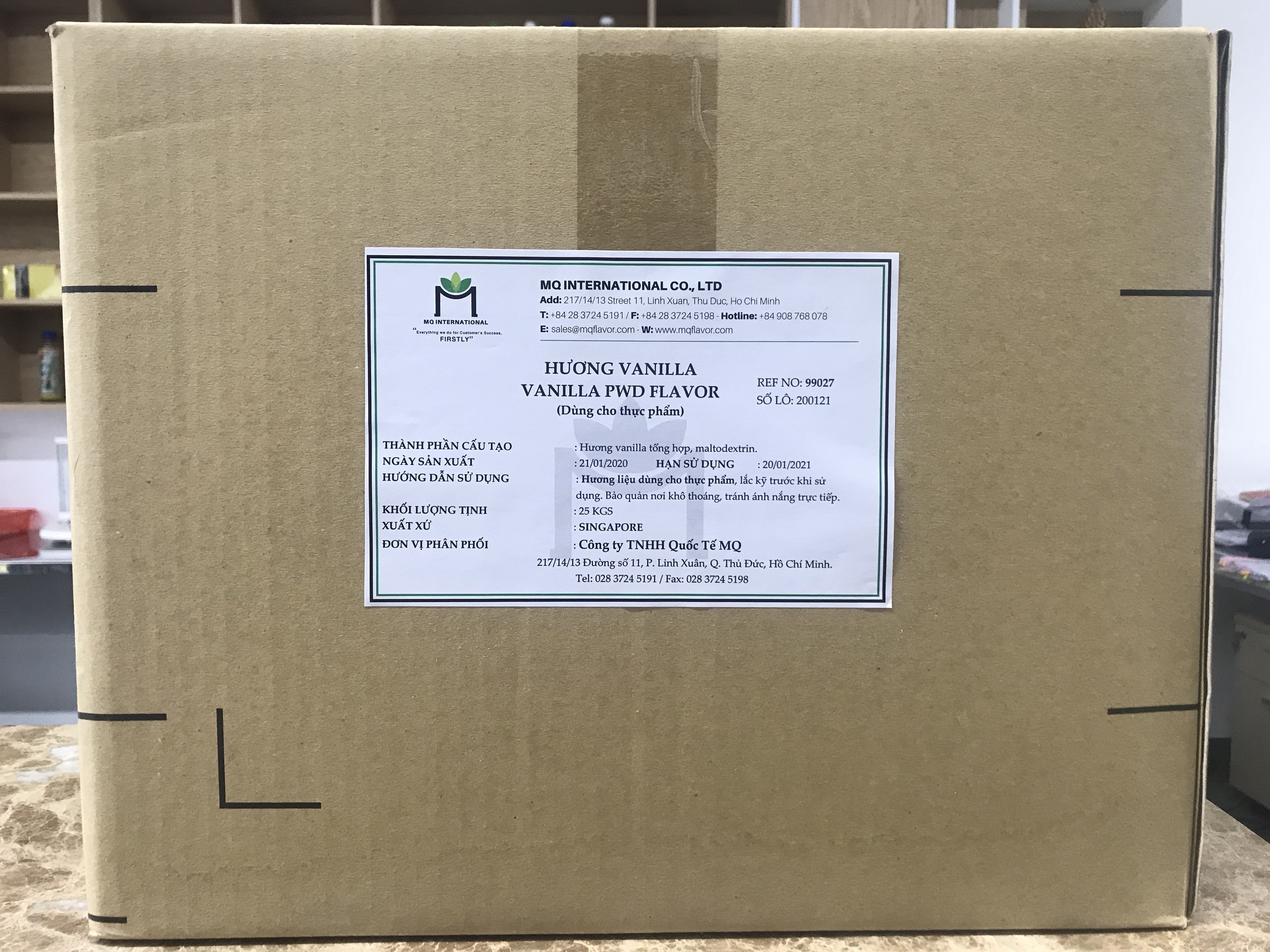 Ưu điểm của hương vanilla (dạng bột) tại MQ International: hương vanilla (dạng bột) đặc trưng, tự nhiên, khả năng chịu nhiệt tốt. Công thức được nghiên cứu bởi các chuyên gia về hương liệu thực phẩm giúp phát huy tối đa lợi thế của hương tự nhiên, giấy chứng nhận chất lượng và chứng nhận xuất xứ, nguồn gốc, sản phẩm được nhập khẩu từ những nhà hương thực phẩm hàng đầu thế giới như: Pháp, Bỉ, Mỹ, Hàn Quốc, Singapore, Taiwan, Hông- Kông…
