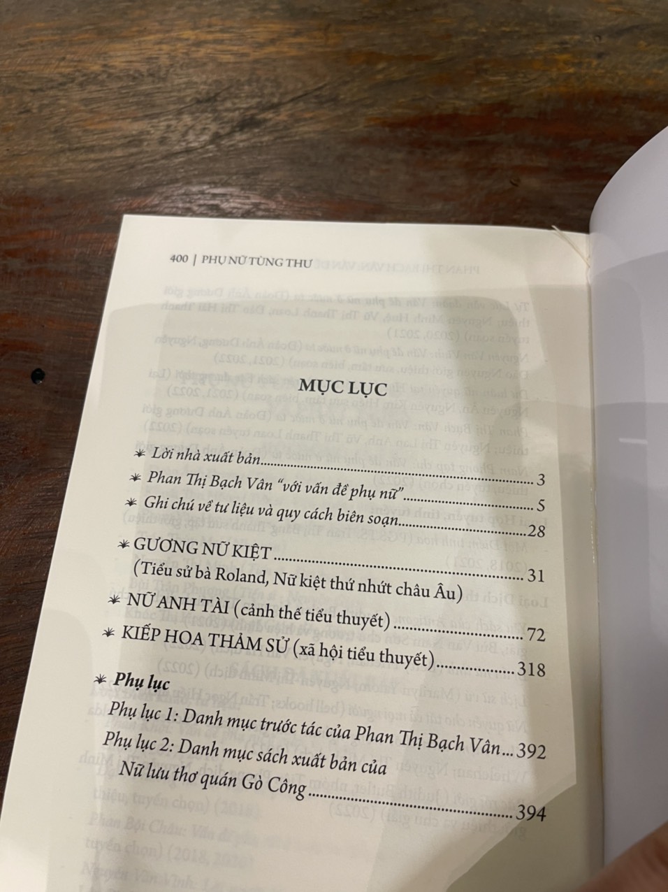 Cuốn sách giới thiệu tới bạn đọc 03 tác phẩm tiêu biểu của nữ sĩ Phan Thị Bạch Vân, bao gồm cả dịch thuật và sáng tác, những tác phẩm đề cập trực tiếp và thẳng thắng các vấn đề rào cản trong tâm tưởng người phụ nữ đầu thế kỉ XX, từ đó đả kích xã hội đương thời, động viên phụ nữ trước nhất là đổi mới tư duy về chức phận, sau là tự mình thay đổi, tìm con đường của riêng mình, tự lập, tự chủ, gánh vác những trọng trách lớn lao, bình đẳng như bao công dân khác trong xã hội. 03 tác phẩm gồm Gương nữ kiệt (Tiểu sử bà Roland, nữ kiệt thứ nhứt châu Âu), Nữ anh tài (cảnh thế tiểu thuyết) và Kiếp hoa thảm sử (xã hội tiểu thuyết). Ngoài việc đưa trực tiếp những tư tưởng mới về đổi mới thân phận người đàn bà vào lời văn, câu thoại các nhân vật trong tác phẩm, điểm hay trong bút văn của Phan Thị Bạch Vân chính bởi sử dụng những lối văn, câu từ truyền thống của Nam Bộ, nói cách khác là dùng một “phông nền” văn chương gần gũi với dân chúng để rồi “thay da đổi thịt”, kể những câu chuyện li kì kiểu mới và ngầm cổ vũ cho tinh thần văn chương không bi lụy, không nặng đạo lí gò ép người đàn bà. Đó là thành công đáng nể trong cả một công cuộc giải phóng nữ giới mà bà tạo dựng, cũng để thấy vai trò không nhỏ của bà trong nền văn học Nam Kỳ đầu thế kỷ XX.