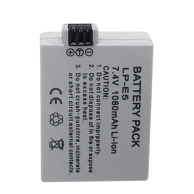 Số mô hình: LP-E5 Kiểu: Li-Ion, Pin Sạc Vôn: 7.4V Dung tích: 1080mAh Thời gian làm việc: hơn 500 lần Sử dụng: Máy ảnh For Canon for E O S-Rebel Xsi . E O S-Rebel T1i . for E O S-Kiss F . E O S-Kiss X3 . E O S-Kiss X2 . for E O S-Rebel Xs for E O S-1000D . E O S-500D . E O S-450D