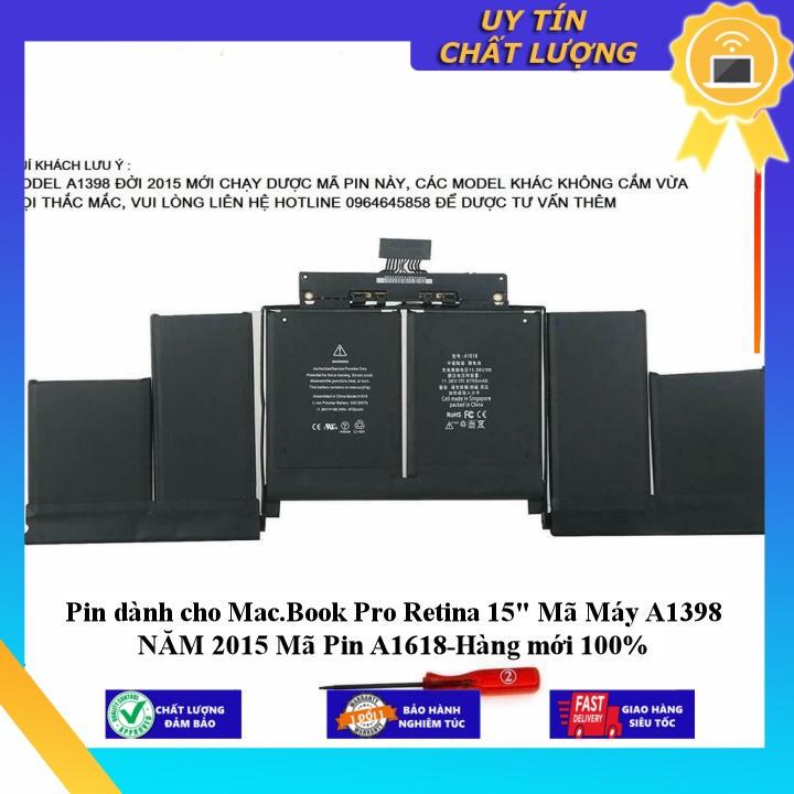 Tháo pin ra khỏi laptop cũng không phải là cách bảo vệ Pin MacBook Pro Retina 15 inch A1618 / A1398 - 2015 ; vì pin được thiết kế để làm ổn định nguồn điện cho Laptop; tránh việc nguồn điện bị ngắt đột ngột; giúp bảo vệ tối đa các thiết bị phần cứng khác như: ổ cứng, CPU, quạt tản nhiệt v.v...khi cac thiết bị này đang hoạt động ở mức cao