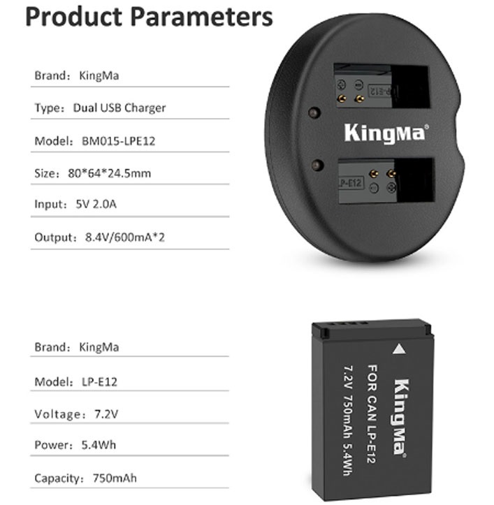 ✨Pin Kingma for Canon LP-E12 - Hàng chính hãng