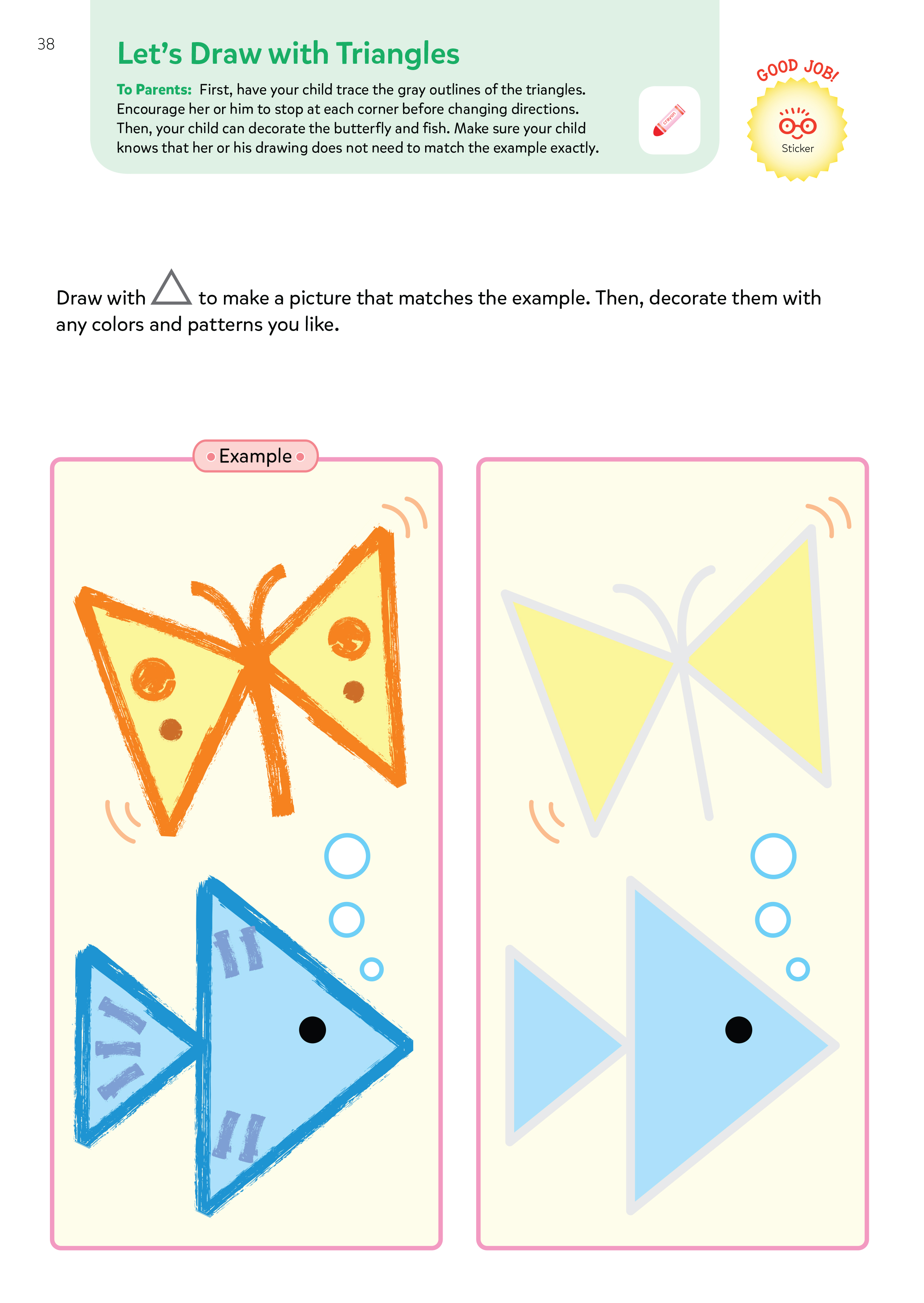 "Play Smart Color & Shape Picture Puzzlers 2+" is an educational book for children aged 2 and up, published by Gakken. The book includes a variety of puzzles and activities such as connecting shapes, comparison games, mazes, coloring challenges, and counting. These activities are designed to develop basic skills in children, such as color and shape recognition and problem-solving abilities. The exercises in the book are structured progressively, meaning the activities are linked together, helping children gradually build confidence and independent learning skills