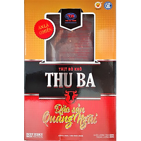 - Bò Khô Thu Ba (KLT 500g) chắc chắn sẽ làm hài lòng khách hàng khi thưởng thức món này. Khi ăn thịt bò miếng Thu Ba bạn sẽ cảm nhận được hương vị tuyệt