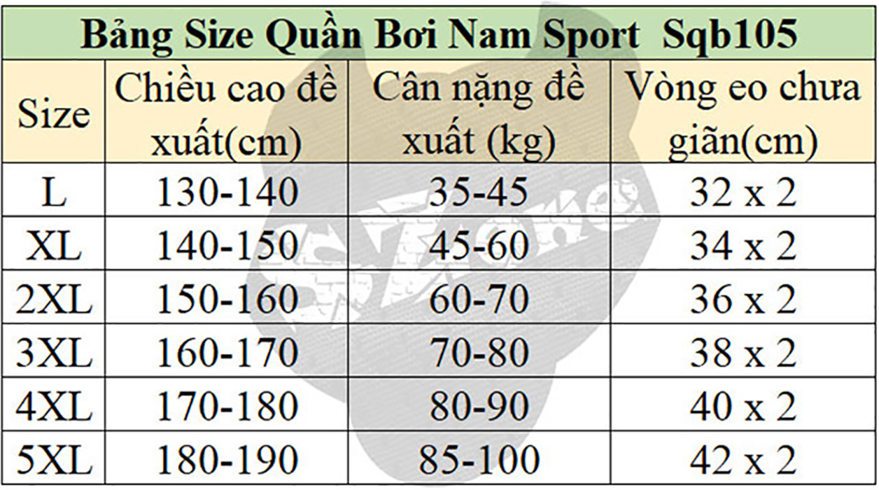 Quần Bơi Lửng Nam Phong Cách Chuyên Nghiệp Thời Trang Thể Thao SQB106 Bảng size L: 150 - 160 cm / Dưới 40 kg XL: 160 - 170 cm / 45 - 60 kg 2XL: 170 - 180 cm / 60 - 72 kg 3XL:...