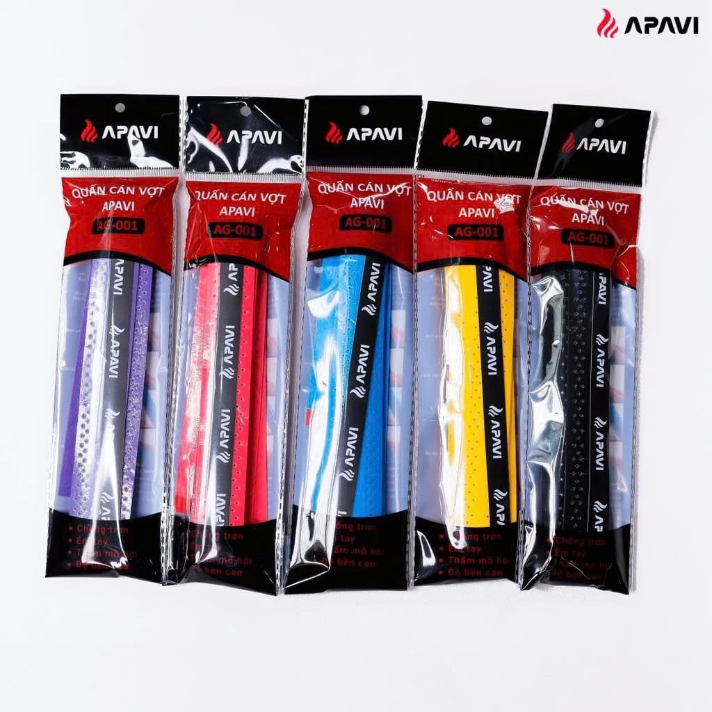 - Dán cố định quấn cán vợt bằng băng keo APAVI
