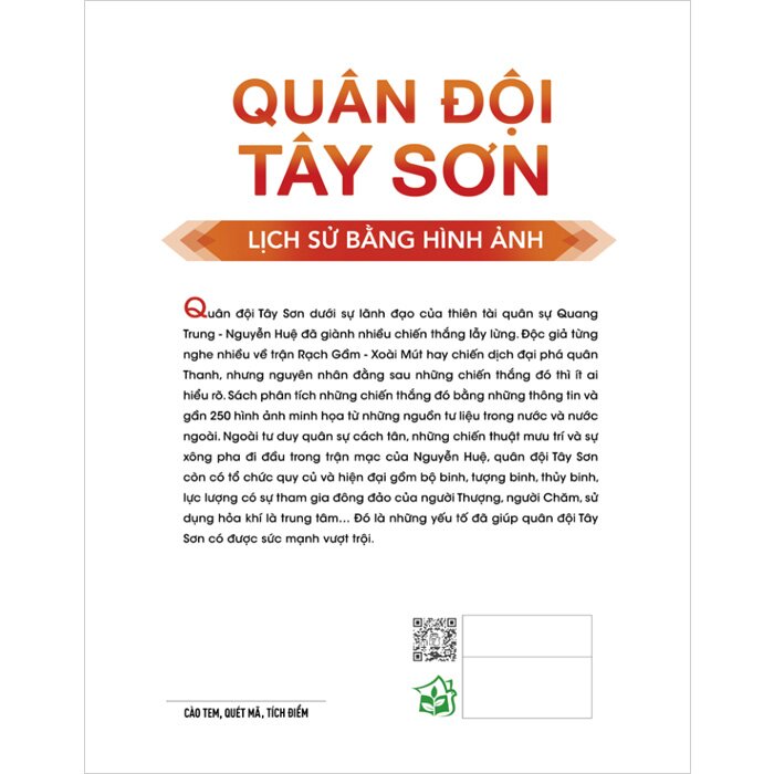 Quân đội Tây Sơn dưới sự lãnh đạo của thiên tài quân sự Quang Trung - Nguyễn Huệ đã giành nhiều chiến thắng lẫy lừng. Độc giải từng nghe nhiều về trận Rạch Gầm - Xoài Mút hay chiến dịch đại phá quân Thanh, nhưng nguyên nhân đằng sau những chiến thắng đó thì ít ai hiểu rõ. Sách giúp mổ xẻ những chiến thắng đó bằng những thông tin và gần 250 hình ảnh minh họa từ những nguồn tư liệu trong và ngoài nước. Ngoài tư duy quân sự cách tân, những chiến thuật mưu trí và sự xông pha đi đầu trong trận mạc của Nguyễn Huệ, quân đội với tổ chức quy củ và hiện đại gồm bộ binh, tượng binh, thủy binh, lực lượng có sự tham gia đông đảo của người Thượng, người Chăm, vũ khí sử dụng hỏa khí là trung tâm đã giúp quân đội Tây Sơn có được sức mạnh vượt trội.