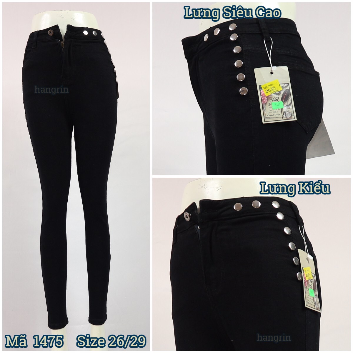 – Quần Jean Nữ Lưng Cao Lai Kiểu Màu Đen Tuyền Size 26 -29 – Chất liệu dày dặn, co giãn rất nhiều – Lưng kiểu, lưng cao, lưng siêu cao, có cúp ngang – Lai thường,