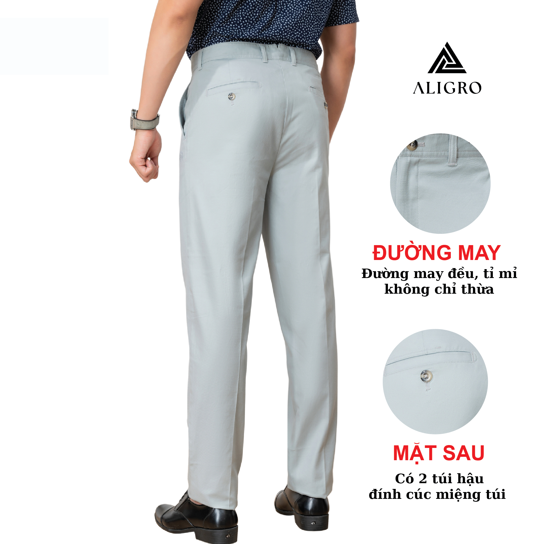 Mua tại TiktokGIỚI THIỆU THƯƠNG HIỆU Mang trong mình tầm nhìn chiến lược trở thành thương hiệu “Thời trang nam được yêu thích nhất Việt Nam” nên Aligro luôn chú trọng nghiên cứu phát triển mẫu mã, phom dáng phù hợp với vóc dáng hình thể đàn ông Việt. Sản phẩm của chúng tôi mang tới hình ảnh trẻ trung, năng động, hiện đại mà không kém phần lịch sự, sang trọng - cam kết mang lại giá trị đích thực và một cuộc sống thịnh vượng hơn cho phái mạnh Việt. CHI TIẾT THIẾT KẾ QUẦN KAKI NAM ALIGRO