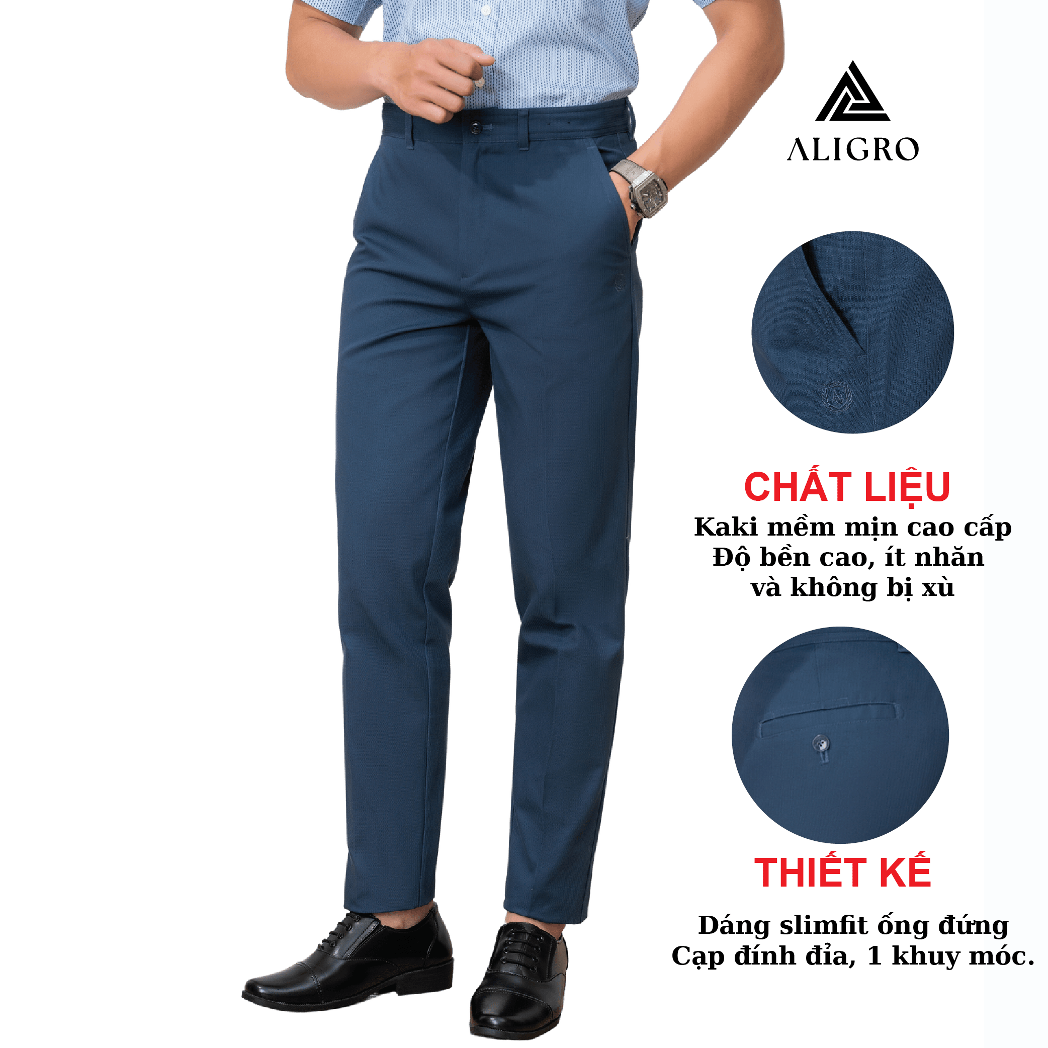 ✨Quần kaki nam ALIGRO chất liệu kaki mềm mịn cao cấp dáng slimfit màu xanh đen ALGK063
