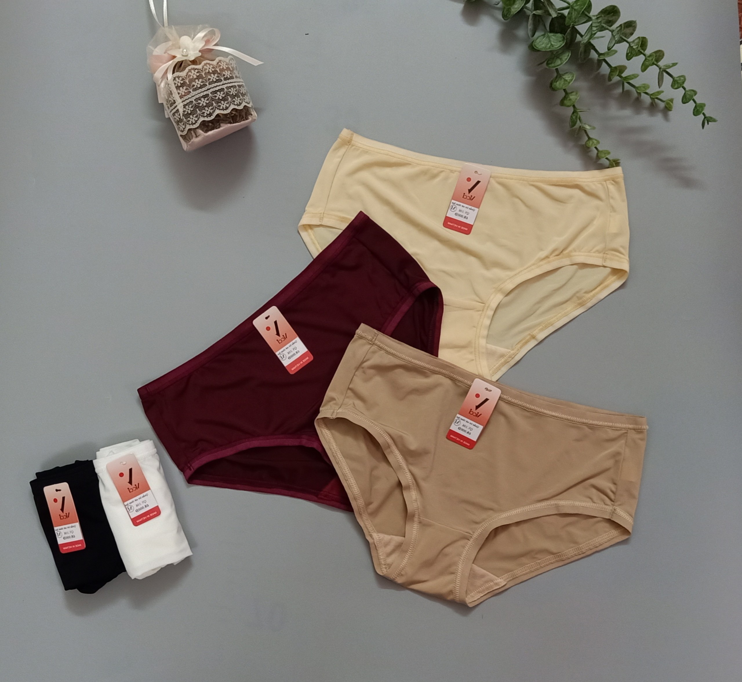 Từ khóa chính - Quần lót nữ cotton lụa - Quần lót lưng cao Lady 515 - Quần lót cotton silk mềm mại - Combo 5 quần lót Lady 515 1. Tiêu đề chuẩn SEO Combo 5 Quần Lót Nữ Cotton Lụa Mềm Lưng Cao Lady 515 – Che Bụng, Êm Ái, Co Giãn 4 Chiều 2. Đoạn mô tả ngắn (Meta Description) Sở hữu ngay combo 5 quần lót Lady 515 chất liệu cotton lụa mềm mịn, thiết kế lưng cao ôm gọn bụng, co giãn 4 chiều – mang lại cảm giác dễ chịu và tự tin cả ngày dài! 3. Chi tiết sản phẩm - Chất liệu cotton lụa cao cấp: Pha trộn cotton thoáng mát và sợi lụa tổng hợp mềm mại, thấm hút mồ hôi nhanh, không gây bí bách. - Thiết kế lưng cao ôm gọn: Đai cạp bản rộng 2 lớp nâng đỡ và che khuyết điểm vùng bụng dưới, tạo dáng thon gọn, tự tin diện váy, quần ôm. - Co giãn 4 chiều: Đường vải đàn hồi ôm sát, linh hoạt theo mọi cử động, không gây tuột hay xô lệch. - Đường may phẳng mịn: Viền cạp và viền đùi được may khéo léo, không hằn vết, cho cảm giác mặc như không mặc. - Combo tiết kiệm 5 chiếc: Mix 5 tông màu cơ bản – Đỏ đô, Be nude, Trắng ngà, Đen, Cam san hô, dễ dàng phối cùng mọi trang phục. 4. Size & Màu sắc - Size Big: tham khảo bảng size - Màu sắc: Đỏ đô, Be nude, Trắng ngà, Đen, Cam san hô 5. Công dụng & Đối tượng - Dành cho: Phái nữ có vòng eo, vòng mông to, yêu thích nội y thoáng mát và hỗ trợ che khuyết điểm. - Công dụng: -